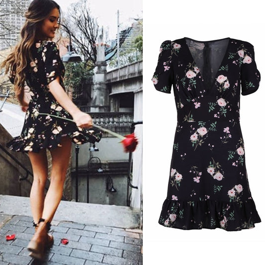 Boho Women V Neck Short Sleeve Paisley Print Belt Long Dress